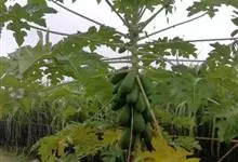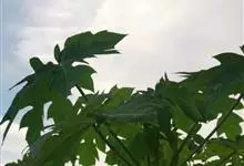 番木瓜,番木瓜科番木瓜属的常绿软木质小乔木,高达10米,具有乳汁;茎不分枝或有时于损伤处分枝;叶大且聚生于茎顶,近似盾形,叶柄中空;花单性或两性,有些品种雄株偶尔生两性花或雌花,…全部>>