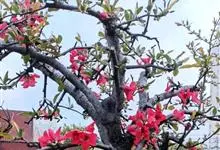 贴梗海棠 Nakai)是蔷薇科、木瓜海棠属植物。落叶灌木,高达2米,枝条直立开展,有刺。叶片卵形至椭圆形,稀长椭圆形,长3-9厘米,宽1.5-5厘米。花先叶开放,3-5朵簇生于二年生老枝上。…全部>>