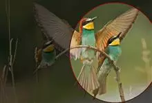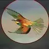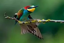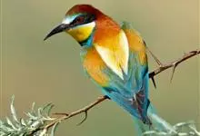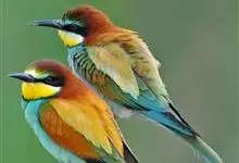 栗喉蜂虎是蜂虎科蜂虎属的鸟类。有热带鸟类羽毛艳丽的特征:喉部是栗红色的,黑色的过眼纹,翅膀和背部是绿色的,尾翼是蓝色的,飞行时翅膀下面的羽毛是橙黄色的,在阳光的照射下,它们全身闪烁着金属般的艳丽光泽,…全部>>
