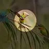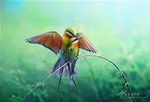 栗喉蜂虎是蜂虎科蜂虎属的鸟类。有热带鸟类羽毛艳丽的特征:喉部是栗红色的,黑色的过眼纹,翅膀和背部是绿色的,尾翼是蓝色的,飞行时翅膀下面的羽毛是橙黄色的,在阳光的照射下,它们全身闪烁着金属般的艳丽光泽,…全部>>