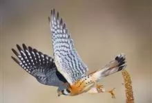 红隼:是隼科、隼属的小型猛禽之一。体重173-335克,体长305-360毫米。翅狭长而尖,尾亦较长,外形和共同爪隼非常相似。雄鸟头蓝灰色,背和翅上覆羽砖红色,具三角形黑斑;腰、尾上覆羽和尾羽蓝灰色,…全部>>