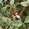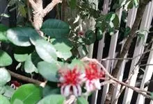 菲油果是桃金娘科、野凤榴属植物。常绿小乔木,高约5米;枝圆柱形,灰褐色。叶片革质,椭圆形或倒卵状椭圆形,长6-8.5厘米,宽3.4-3.7厘米。花直径2.5-5厘米;花瓣外面有灰白色绒毛,…全部>>