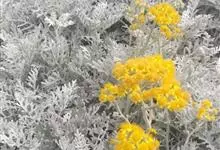 银叶菊,是菊科疆千里光属多年生草本植物。银叶菊的茎灰白色,植株多分枝;叶回羽状裂,正反面均被银白色柔毛;头状花序集成伞房花序,舌状花小,金黄色,管状花褐黄色;花期为6-9月。银叶菊原产于地中海沿岸地区,…全部>>