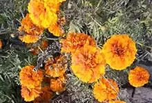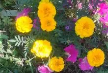 万寿菊是菊科万寿菊属一年生草本植物,别名孔雀菊、缎子花、臭菊花、西番菊、红黄草、小万寿菊、臭芙蓉、孔雀草。万寿菊茎近基部分枝。叶羽状分裂,长5-10厘米,宽4-8厘米,裂片长椭圆形或披针形,具锐齿,…全部>>