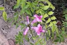 非洲凌霄 Sprague)是紫葳科非洲凌霄属植物。常绿半蔓性灌木,自然独立生长状态下,高1米左右,少数达到2米。叶对生,奇数羽状复叶,叶柄具凹沟。花期秋至翌茸春季,圆锥花序顶生,花冠漏斗状钟形,…全部>>