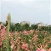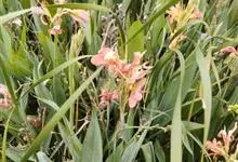 粉美人蕉:是一种球根草本植物。根茎延长,株高1.5-2米;茎绿色。叶片披针形;总状花序疏花,单生或分叉,稍高出叶上;苞片圆形,褐色,花黄色,无斑点;有多种园艺栽培品种,颜色从粉、橙红色及具带红色斑点…全部>>