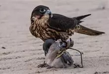 燕隼:是隼科、隼属的鸟类。体长约36厘米,体重140-340克。体形比猎隼、游隼等都小,为小型猛禽,雌鸟比雄鸟稍大;头部和颈后主要为灰黑色,颈后有一乳白色领斑;上体其余部分羽毛灰色,尾部稍淡,…全部>>