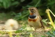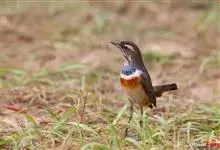 蓝点颏亦称“蓝喉歌鸲”,通称蓝靛颏儿。身体大小和麻雀相似,体长12-13厘米,体重17-18克。头部、上体主要为土褐色。眉纹白色。尾羽黑褐色,基部栗红色。颏部、喉部辉蓝色,下面有黑色横纹。下体白色。…全部>>