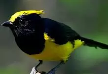 冕雀:共有4个亚种。体长20-21厘米,体重34-49克。具蓬松的黄色长型冠羽。雌鸟似雄鸟,但喉及胸深橄榄黄色,上体沾橄榄色。不会被误认的体大的黄色及黑色山雀。混群栖于原始林及次生林的林冠层,…全部>>