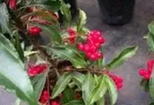朱砂根是报春花科紫金牛属植物,又名铁凉伞、红铜盘、百两金、大罗伞、开喉箭等,为常绿小灌木,高1~2米,茎粗壮,无毛,除侧生特殊花枝外,无分枝,叶片革质或坚纸质,椭圆形、椭圆状披针形至倒披针形,…全部>>