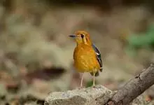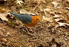 橙头地鸫是鸫科、地鸫属中型鸟类,体长18-22厘米。整个头、颈和下体橙栗色,其余上体包括两翅和尾蓝灰色或橄榄灰色,翅上多具白色翅斑。虹膜褐色或棕褐色,嘴黑褐色或黑色,脚橙黄色或肉黄色。特征极明显。…全部>>