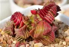 茜之塔 Toelken)是景天科青锁龙属多年生肉质草本植物。茜之塔叶交互对生,紧密排列,三角形,绿色,冬季叶转变呈红色;花小,白色;花期秋季。茜之塔因其整齐层叠的紫红色叶片让人想到红色佛塔,故名。…全部>>