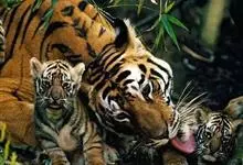 印度支那虎:简称印支虎。是老虎的一个亚种。雄性平均体重185千克,体长2.7米。与孟加拉虎相比,它们的体形较小,毛色更深,身上的条纹更短、更窄;而胃部、咽喉和两颊有较大的白色斑痕。…全部>>
