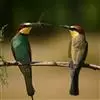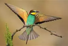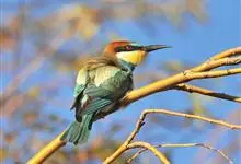 蓝颊蜂虎:是蜂虎科、蜂虎属的鸟类,共有2个亚种。体长27-33厘米,翼展46-49厘米,体重38-50克。嘴形细长而下弯,先端尖,…全部>>