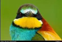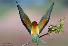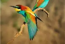 栗喉蜂虎是蜂虎科蜂虎属的鸟类。有热带鸟类羽毛艳丽的特征:喉部是栗红色的,黑色的过眼纹,翅膀和背部是绿色的,尾翼是蓝色的,飞行时翅膀下面的羽毛是橙黄色的,在阳光的照射下,它们全身闪烁着金属般的艳丽光泽,…全部>>