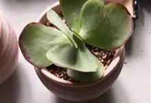 唐印为景天科伽蓝菜属的多年生肉质草本植物。植株中型,株高50厘米,宽20厘米,多分枝;叶片肉质,对生,卵形,全缘,先端钝圆,叶片淡绿色至灰绿色,表面被有厚厚的白粉,光照充足时,叶缘呈红色;圆锥花序,…全部>>