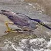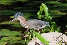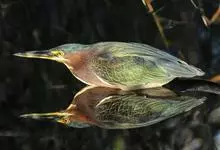 绿鹭:是鹳形目鹭科绿鹭属鸟类。体型小,头顶黑,枕冠亦黑色,上体蝉灰绿色,下体两侧银灰色;前额至后枕及冠羽墨绿色,眼后有一白斑,颊纹黑色;颚纹白色,后颈、颈侧和体侧烟灰色;背部披灰绿色矛状长羽,…全部>>