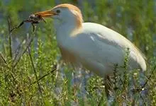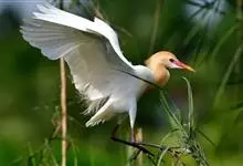牛背鹭:体较肥胖,喙和颈较短粗。夏羽大都白色;头和颈橙黄色,前颈基部和背中央具羽枝分散成发状的橙黄色长形饰羽;前颈饰羽长达胸部,背部饰羽向后长达尾部,尾和其余体羽白色。冬羽通体全白色,个别头顶缀有黄色,…全部>>