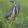 绿鹭:是鹳形目鹭科绿鹭属鸟类。体型小,头顶黑,枕冠亦黑色,上体蝉灰绿色,下体两侧银灰色;前额至后枕及冠羽墨绿色,眼后有一白斑,颊纹黑色;颚纹白色,后颈、颈侧和体侧烟灰色;背部披灰绿色矛状长羽,…全部>>