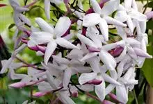 素馨花,木犀科素馨属多年生的攀援灌木植物。攀援灌木,小枝圆柱形,具棱或沟;叶对生,叶轴常具窄翼,小叶片卵形或长卵形;聚伞花序顶生或腋生,花序梗长,苞片线形,花萼无毛,裂片锥状线形,花冠白色,…全部>>