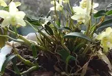 束花石斛是兰科石斛属植物。茎粗厚,肉质,下垂或弯垂,圆柱形,不分枝,具多节。叶二列,互生于整个茎上,纸质,长圆状披针形。伞状花序近无花序柄,每2-6花为一束,侧生于具叶的茎上部;花黄色,…全部>>
