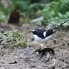 斑背燕尾是鹟科、燕尾属中型鸟类,体长24-25厘米。额至头顶前部白色,其余头、颏、喉、胸黑色,后颈有一白领,背黑色具圆形白色斑点,腰白色,两翅黑色具白色翅斑,尾呈深叉状,黑色、具白色端斑。…全部>>