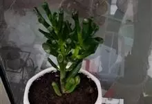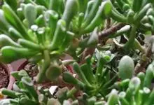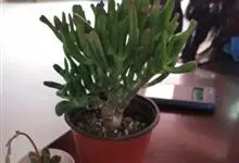 筒叶花月,是景天科青锁龙属的多年生草本植物。植株多分株,灌木状,茎较粗壮,圆柱形,表皮灰褐色;叶片肉质,互生,呈圆筒状,簇生于茎或分枝顶端,叶端呈斜截形,截面为椭圆形;花呈星状,淡白色;花期秋季。…全部>>