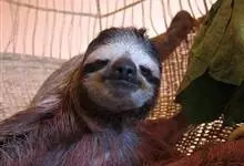 树懒,是披毛目哺乳动物的通称,共有2科2属6种。树懒头又圆又小,耳朵也很小,而且隐没在毛中;上颌有5齿,下颌有4齿,细小而没有釉质;尾巴很短,只有3~4厘米;毛被蓬松长厚,毛色灰褐。因其树懒形状略似猴,…全部>>