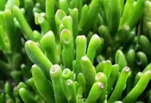 筒叶花月,是景天科青锁龙属的多年生草本植物。植株多分株,灌木状,茎较粗壮,圆柱形,表皮灰褐色;叶片肉质,互生,呈圆筒状,簇生于茎或分枝顶端,叶端呈斜截形,截面为椭圆形;花呈星状,淡白色;花期秋季。…全部>>