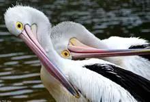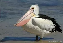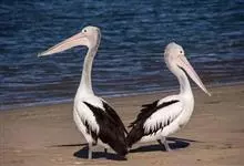 澳大利亚鹈鹕是一种大型涉禽,体重达13千克。生活于沿海及河川、湖泊等处。飞行力强而悠逸,常群飞群栖,极善于游泳,但不会潜水。游泳时张口捕鱼,将捕得的鱼兜入喉囊内。有时结群,排成长线,…全部>>