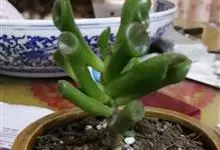 筒叶花月,是景天科青锁龙属的多年生草本植物。植株多分株,灌木状,茎较粗壮,圆柱形,表皮灰褐色;叶片肉质,互生,呈圆筒状,簇生于茎或分枝顶端,叶端呈斜截形,截面为椭圆形;花呈星状,淡白色;花期秋季。…全部>>