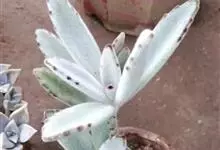 褐斑伽蓝是景天科伽蓝菜属的多年生多肉类植物,茎直立,多分枝,叶生于枝上,肉质叶片匙形,上面密被白色绒毛,下部全缘,叶缘上部有缺刻,缺刻处有深褐或棕色斑块。褐斑伽蓝原产非洲的马达加斯加岛。…全部>>