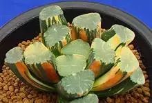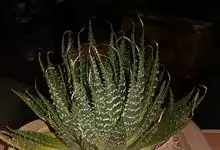 条纹十二卷 Haw.)是芦荟科十二卷属植物,为多年生肉质草本植物。植株高度10-15厘米,其呈莲座状生长;叶片紧密轮生在茎轴上,柔软多汁,呈长三角状披针形,极肥厚;叶面光滑、扁平,色深绿;叶背突起,…全部>>