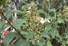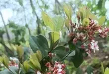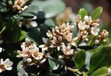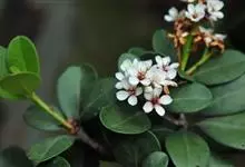 厚叶石斑木 Makino)是蔷薇科,石斑木属常绿灌木或小乔木,枝粗壮极叉开,枝和叶在幼时有褐色柔毛,后脱落。叶片厚革质,长椭圆形、卵形或倒卵形,圆锥花序顶生,萼筒倒圆锥状,萼片三角形至窄卵形;花瓣白色,…全部>>