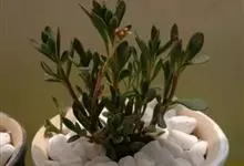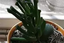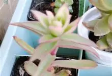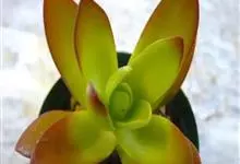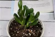 筒叶花月,是景天科青锁龙属的多年生草本植物。植株多分株,灌木状,茎较粗壮,圆柱形,表皮灰褐色;叶片肉质,互生,呈圆筒状,簇生于茎或分枝顶端,叶端呈斜截形,截面为椭圆形;花呈星状,淡白色;花期秋季。…全部>>