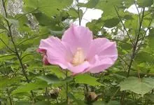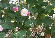 木芙蓉,锦葵科木槿属落叶灌木或小乔木。小枝上有细绒毛;叶片为卵状心形,托叶为披针形,常早落;花单生,花萼为钟形,花冠初为白色或淡红色,后逐渐变为深红色;果实为扁球形,有淡黄色的毛附着。花期8到10月。…全部>>