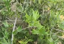 构骨叶冬青学名枸骨,又名猫儿刺、老虎刺、八角刺、鸟不宿、构骨、狗骨刺、猫儿香和老鼠树。常绿灌木或小乔木,高1-3米,二年枝褐色,三年生枝灰白色,叶片厚革质,花淡黄色,果球形,直径8-10毫米,成熟时…全部>>
