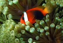 小丑鱼是鲈形目雀鲷科小丑鱼属鱼类的统称。体长仅5—6厘米。身体色彩艳丽,多为红色、橘红色;除透明的胸鳍与软背鳍鳍条外部,其余鳍均为黑色。体形怪异,体色多变,通常体侧有白色条纹。…全部>>