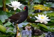 黑水鸡:是鹤形目、秧鸡科的鸟类,共有12个亚种。中型涉禽,体长24-35厘米。嘴长度适中,鼻孔狭长;头具额甲,后缘圆钝;嘴和额甲色彩鲜艳。翅圆形,第2枚初级飞羽最长,或第2枚和第3枚初级飞羽等长,…全部>>