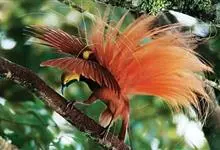 大极乐鸟是极乐鸟属中最大的鸟种。成年雄鸟体长可达到43厘米,雌性可达35厘米。雄鸟的额、颊、喉等墨绿色;头、颈黄色;上体暗赤栗色;腹部葡萄红色,胁部有长饰羽,其基部橙黄,中部黄色,…全部>>