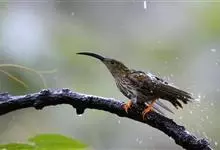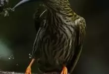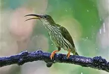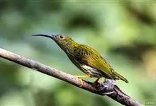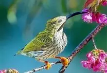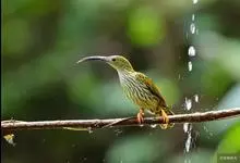 纹背捕蛛鸟:为太阳鸟科捕蛛鸟属的鸟类。是太阳鸟科中体型较大的一种,体重25-45克,体长160-210毫米。嘴粗长而尖且向下弯曲。上体橄榄黄色具黑色中央斑纹。下体淡黄白色满布黑色纵纹,尾具黑色次端斑。…全部>>