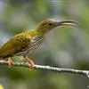 长嘴捕蛛鸟,小型鸟类,体长14-16厘米。嘴长而尖向下弯曲。上体橄榄绿色,眼先和短眉灰白色,两翅和尾暗褐色,外翈羽缘橄榄绿色,羽端灰褐色,自嘴基沿喉侧有一黑色纵纹。颏、喉灰白色,其余下体鲜黄色,…全部>>