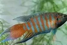 叉尾斗鱼,体形与圆尾斗鱼相似。腹鳍有1根分节鳍条特别延长,雄鱼鳍条延长尤甚,尾鳍叉形。 多生活于山塘、稻田及水泉等浅水地区,食无脊椎动物。繁殖期雄鱼吐泡沫为巢,将卵汇集于中,雄鱼有护巢的习性。个体小,…全部>>