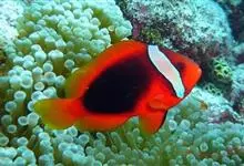 小丑鱼是鲈形目雀鲷科小丑鱼属鱼类的统称。体长仅5—6厘米。身体色彩艳丽,多为红色、橘红色;除透明的胸鳍与软背鳍鳍条外部,其余鳍均为黑色。体形怪异,体色多变,通常体侧有白色条纹。…全部>>