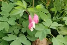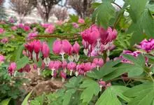 荷包牡丹 Fukuhara),是罂粟科荷包牡丹属的多年生草本植物,株高30-60厘米,具肉质根状茎;茎直立呈圆柱形;叶二回三出全裂,状似牡丹叶;总状花序顶生,基部为心形,花瓣紫红色至粉红色,稀白色,…全部>>