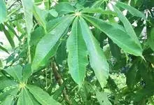 木薯,为大戟科木薯属的一种直立灌木,又名木番薯、树薯。木薯高1.5-3米;块根圆柱状。叶纸质,轮廓近圆形;裂片倒披针形至狭椭圆形;托叶三角状披针形。圆锥花序顶生或腋生,花萼带紫红色且有白粉霜。…全部>>