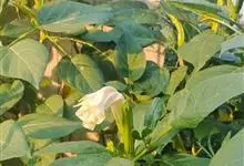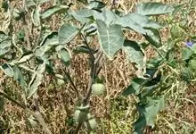 曼陀罗,茄科曼陀罗属一年生大型草本植物,全株光滑。有臭气;叶呈广卯形,边缘具不规则波状浅齿裂;花单生于枝杖间或叶腋,直立,有短梗;花萼是筒状裂片三角形,颜色为白色或淡紫色;果实为蒴果卵状,…全部>>
