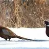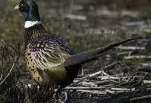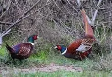 环颈雉是雉科、雉属的一种走禽,共有30个亚种。体重900-1050克,体长53-89厘米。体型较家鸡略小,但尾巴却长得多。雄鸟和雌鸟羽色不同,雄鸟羽色华丽,多具金属反光,…全部>>