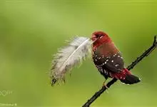 红梅花雀小型鸟类,体长9-10厘米。雄鸟通体朱红色,背、肩、胸等满布白色小斑点,两翅和尾黑褐色均具白色端斑,嘴红色,脚蜡黄色。雌鸟上体淡褐色或赭褐色,翅上中覆羽、大覆羽和内侧飞羽末端具白色斑点,…全部>>