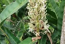 华山姜,是姜科,山姜属多年生草本植物,株高约1米。叶片披针形或卵状披针形,顶端渐尖或尾状渐尖,基部渐狭,两面均无毛;叶舌膜质,具缘毛。花组成狭圆锥花序,小苞片花时脱落;花白色,萼管状,花冠管略超出,…全部>>